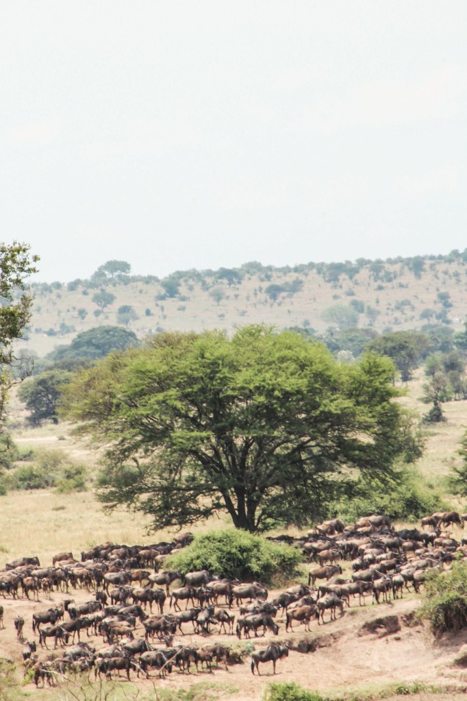 The factor that ultimately determined our main concentration in the northern Serengeti was the opportunity to witness the Great Migration. We were a little late in the season to have a good chance on seeing a Mara River crossing and ultimately after waiting at the river for 3 hours, we called it quits and headed back to camp (we were so close though – the wildebeests gathered right on the river’s edge only to decide the timing wasn’t right) Luckily for us, the river crossing doesn’t define The Great Migration, it’s only a part of it. The migration is actually one big looped cycle that never stops! If you go to Tanzania and want to see the Great Migration, you just have to know what part of the cycle is occurring to know where to focus your time. What we were able to see were the herds and herds of zebras and wildebeests grazing and roaming the plains. It is certainly a sight to see to come upon the savanna and see hundreds, if not thousands of animals scattered everywhere!